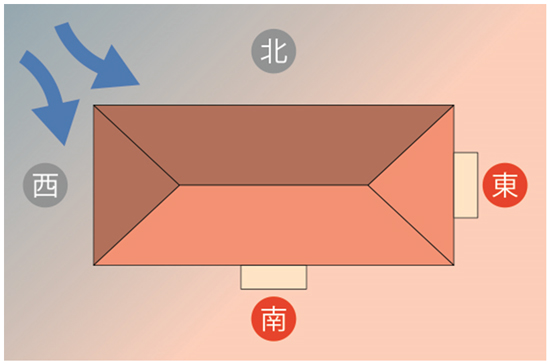 寒冷地での室外機設置は、季節風の影響を受けにくい建物の東・南側