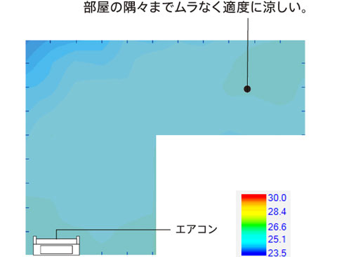 2) 冷房時:緩やかな空気の流れで快適に