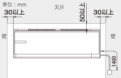 据付の際、壁に面している側は、メンテナンスのことを考えて30mm以上のスペースを確保してください。