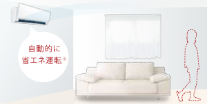 お部屋に人がいなくなると、人感センサーが人の不在を検知して、自動的に省エネ運転になります。