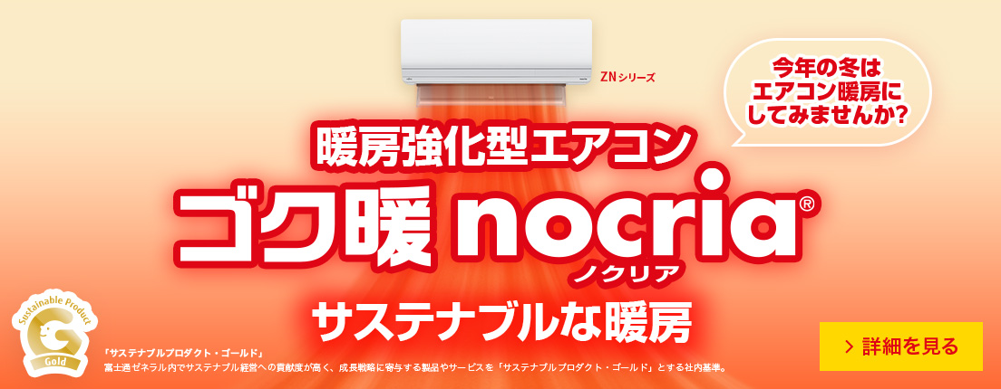- 「ダブルAI」「I-PAM」「あったかアップ」「ゴク暖ノクリア」「DUAL BLASTER」「デュアルブラスター」「nocria」「ノクリア」「ノクリアセレクト」「ハイブリッド気流」「パワーディフューザー」「不在ECO」「涼感プラス」は、株式会社富士通ゼネラルの商標または登録商標です。