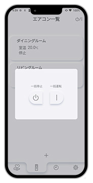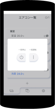 エアコンを複数台登録している場合は、運転/停止を一括操作できます。
