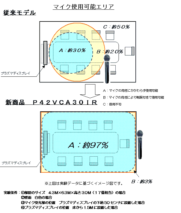 - IR※2対応フィルター搭載により、プラズマディスプレイから放射される赤外線量を、外部オプションフィルターより有効に99%以上※3カット