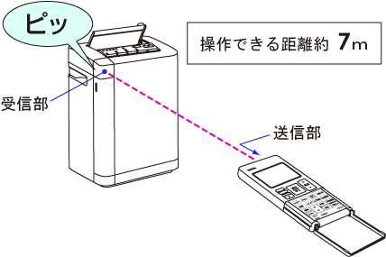 操作可能距離は約7mです。運転開始・停止のみが操作可能です。