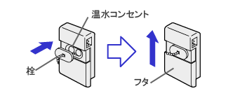 - 温水コンセントに確実に栓をして、フタを閉めてください。