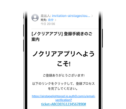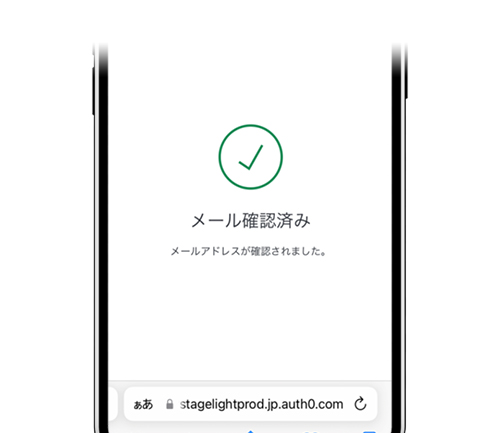 1.アカウント作成の確認メールのリンクをタップして、登録プロセスが完了できていることを確認してください。