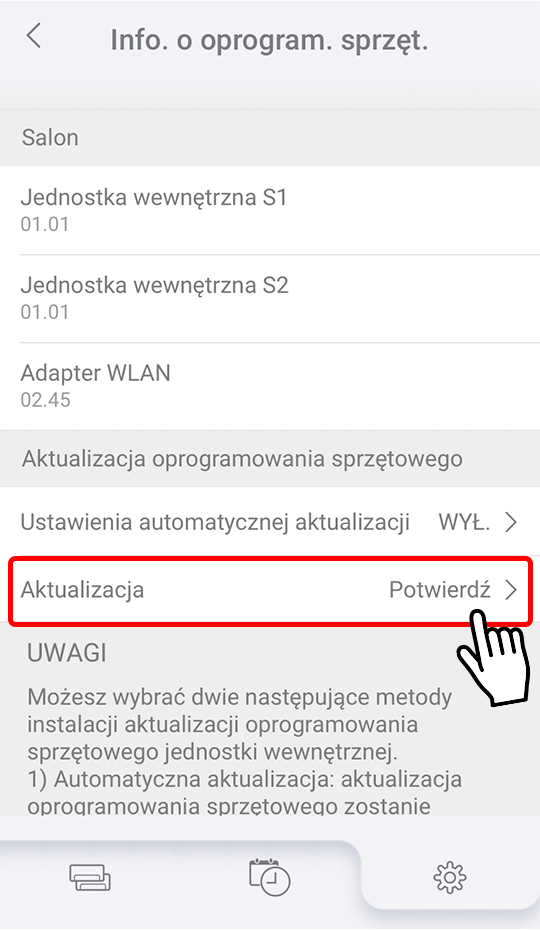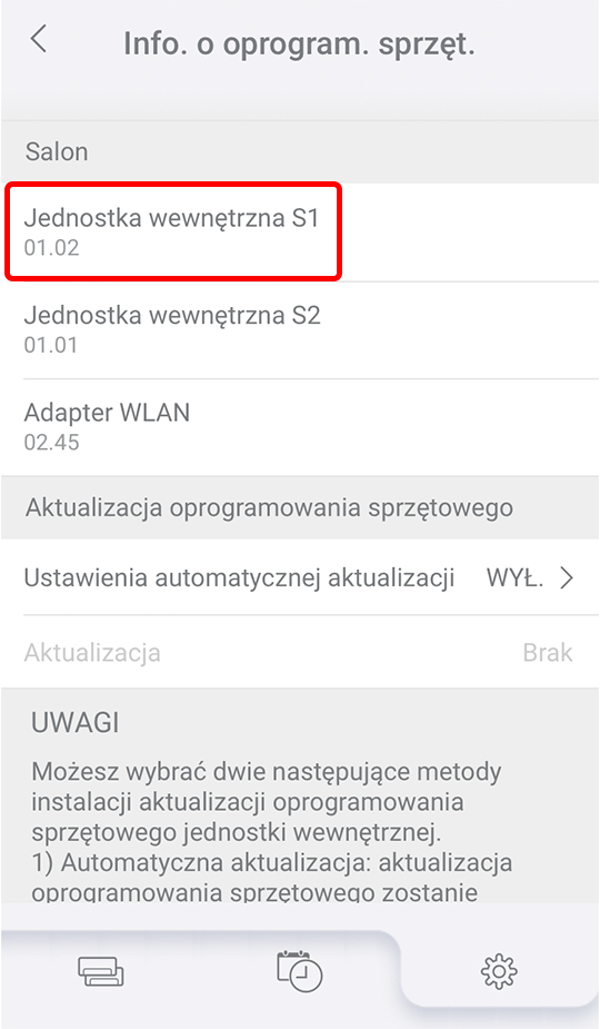 - Aktualizacja nie dotyczy oprogramowania sprzętowego jednostki wewnętrznej S2.