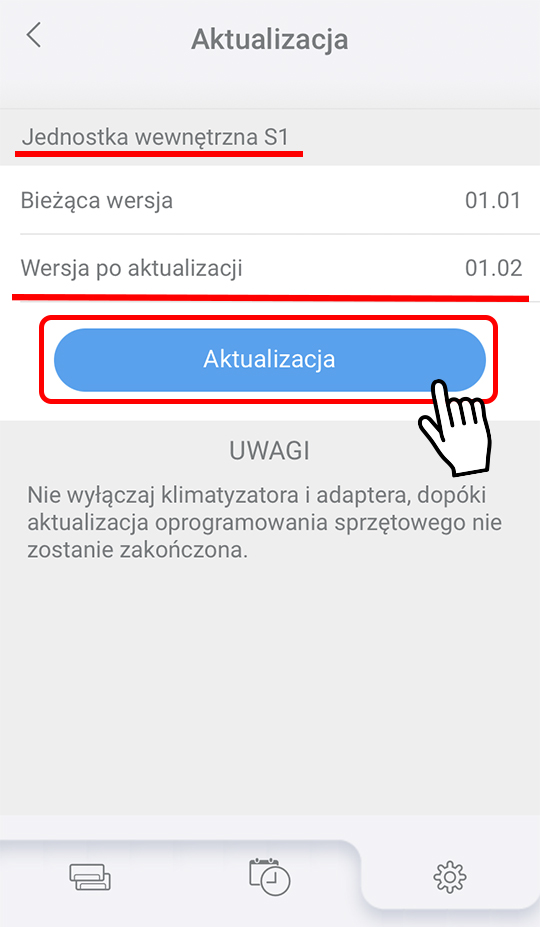 - Podczas aktualizacji nie można korzystać z klimatyzatora.