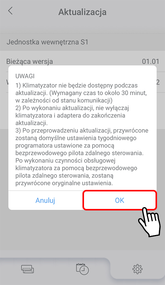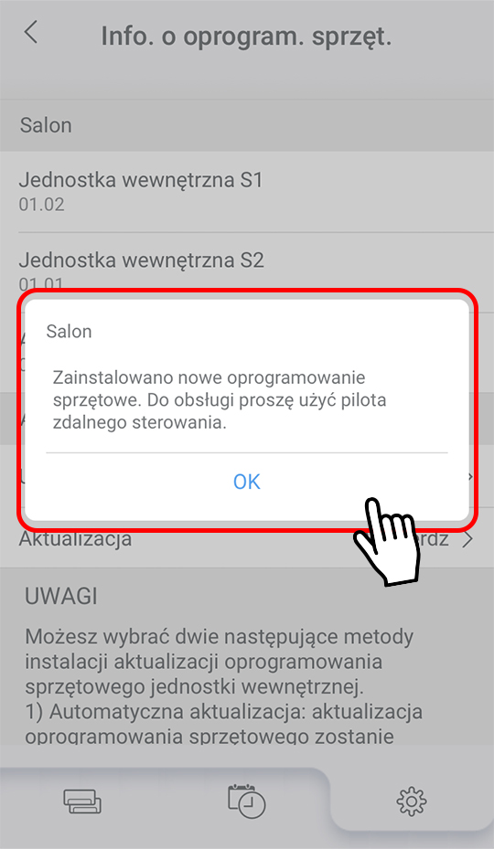 - W przypadku obecności wielu jednostek wewnętrznych objętych aktualizacją otrzymasz wiele powiadomień.