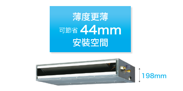 超薄機身,適合安裝在較狹窄的天花板,改善天花板過低造成的壓迫感,放大視覺空間。