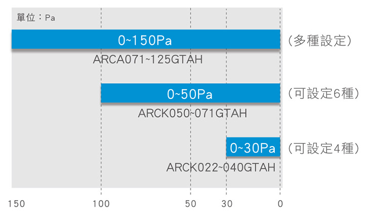 可以透過靜壓設定來配合風管的種類、斷面和長度等,大大提高設計的自由度。