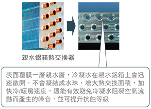 採用3列高密度熱交換器,內有14個迴路,增加熱交換能力,可加大傳熱效果