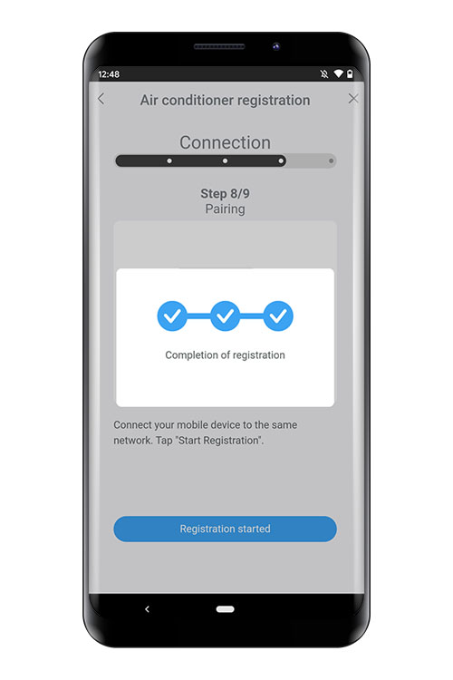 Press [Register started] on the screen on the mobile app to start the connection with the WLAN router.