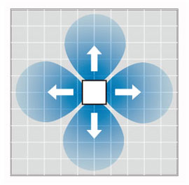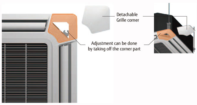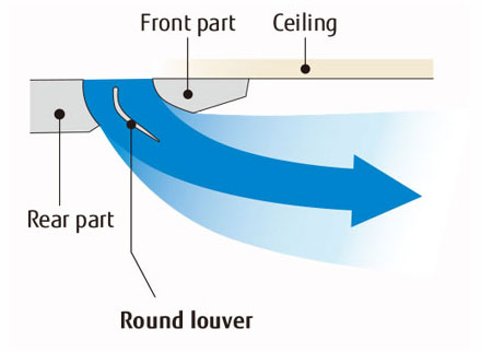 The louver design distributes air leaving a space between the chassis and the ceiling allowing far and wide air flow distribution.