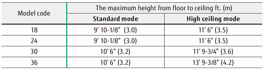 This cassette can be installed up to a height of 13-3/4ft. (4.2m)(AUUA36).