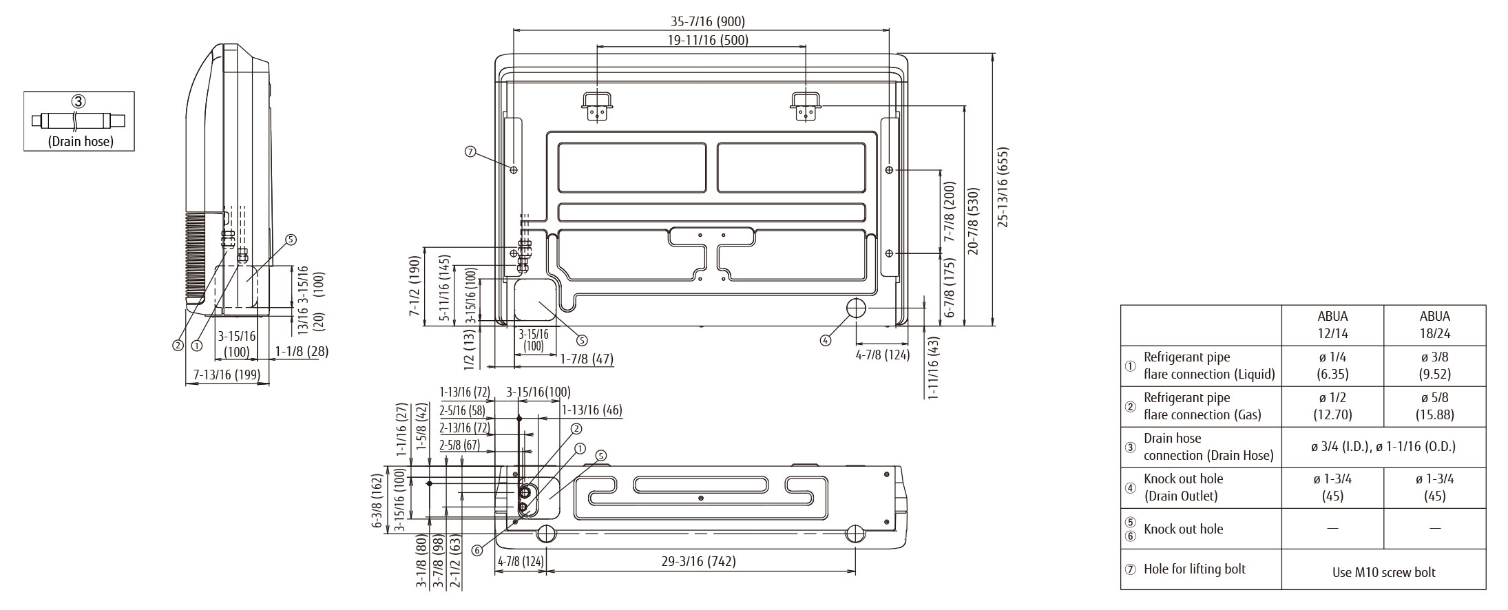 - 25ft.(7.5 m), Height difference : 0ft.(0 m) (Outdoor unit - Indoor unit).