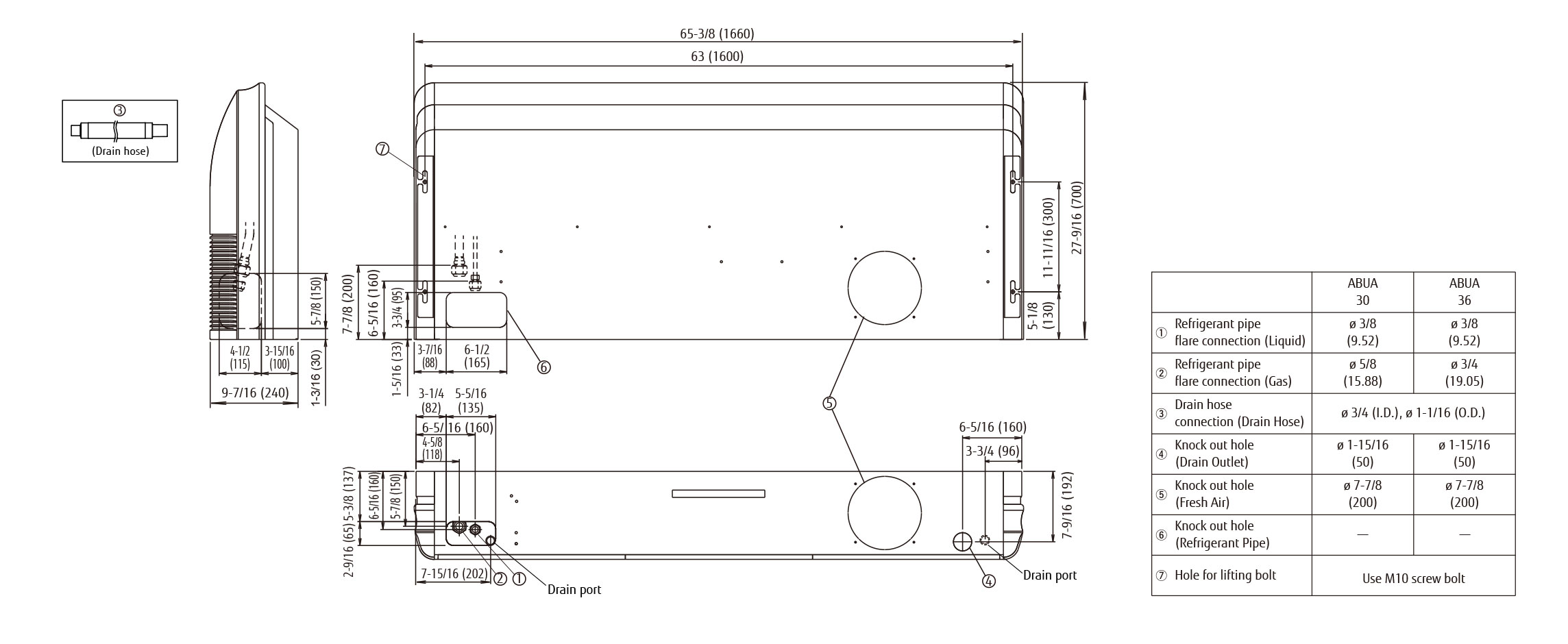 - 25ft.(7.5 m), Height difference : 0ft.(0 m) (Outdoor unit - Indoor unit).
