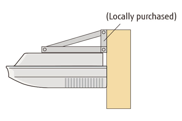 Installation which fixes the indoor unit to the wall by the use of wall brackets (Locally purchased). This type of installation can be used when the ceiling space is insufficient.